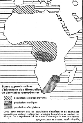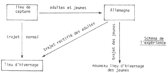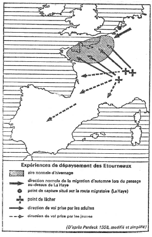 Les jeunes connaissaient la direction générale qui était donc innée. Les adultes ont appris, au cours de leurs précédentes migrations, les coordonnées exactes de leur lieu d’hivernage et retrouvent le lieu normal d’hivernage.