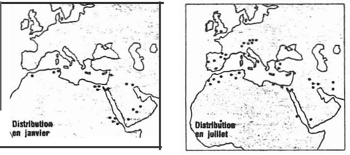 En décembre, l’espèce est présente à peu près uniquement la région méditerranéenne et en Afrique du Nord.