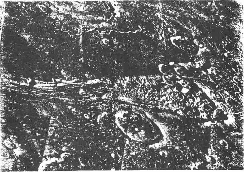 Ce sont des zones extrêmement accidentées, encombrées de cratères (fig. 4). Les figures 5. 6, 7 nous en montrent les détails.