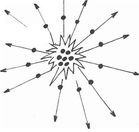 3. – La condensation de matière se produit surtout au centre avec des condensations périphériques se déplaçant tout autour de lui.
