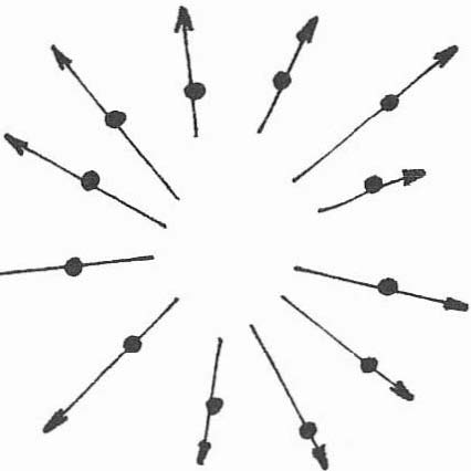 1. – Le nuage de gaz ; l’attraction gravitationnelle attire les molécules en une masse de plus en plus compacte animée d’un mouvement tourbillonnaire.