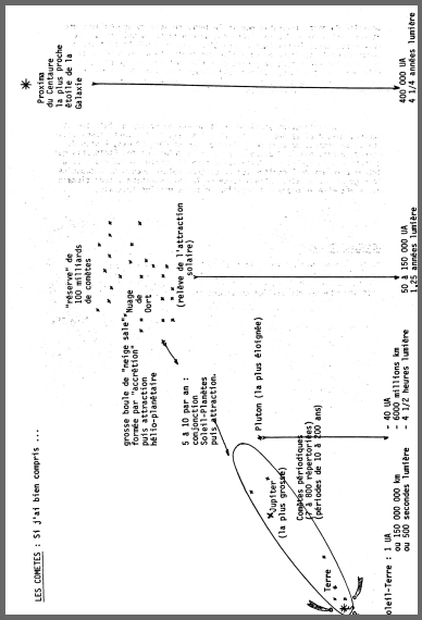 * Oort : Astronome contemporain qui-estime qu’il y aurait 50 000 à 150 000 UA (1 à 3 années-lumière) un nuage de quelque 100 milliards de comètes dont un tout petit nombre parviendrait à passer l’intérieur du système planétaire.