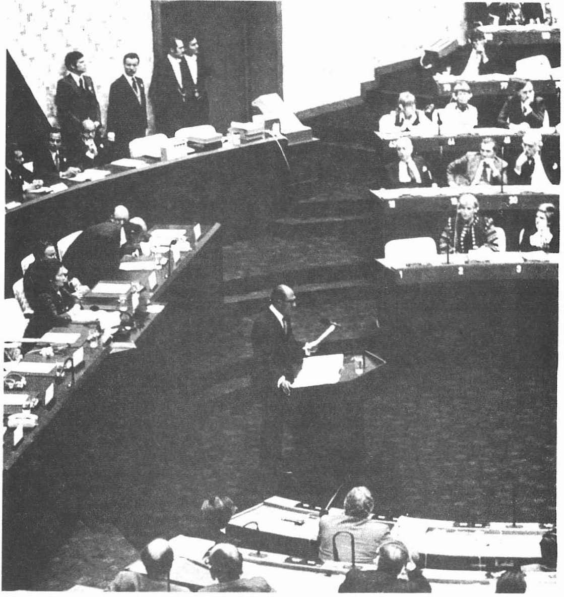 Photo 4. 10 février 1981 : le président de la République arabe d’Égypte, Monsieur Anouar El Sadate, s’adresse aux membres du Parlement européen réuni en séance solennel à Luxembourg.