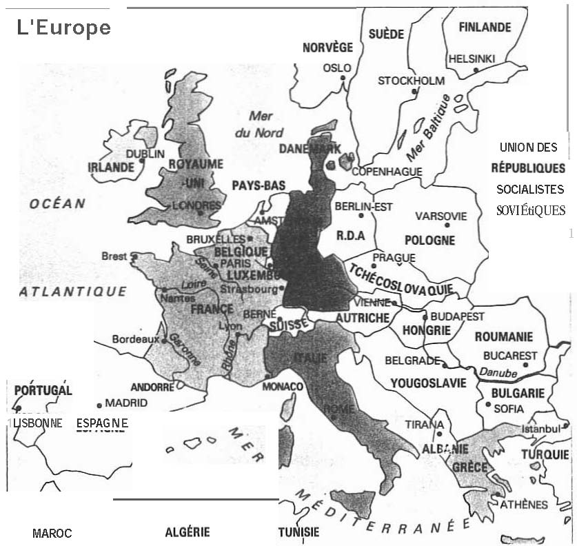 L’Europe n’est pas une entité bien définie. La carte représente l’Europe des 12. L’Europe du point de vue géographique ne s’arrête pas là. L’Allemagne de l’Est, la Pologne, la Yougoslavie, l’Albanie, la Suisse, l’Autriche, les pays du Nord … ne s’y trouvent pas.