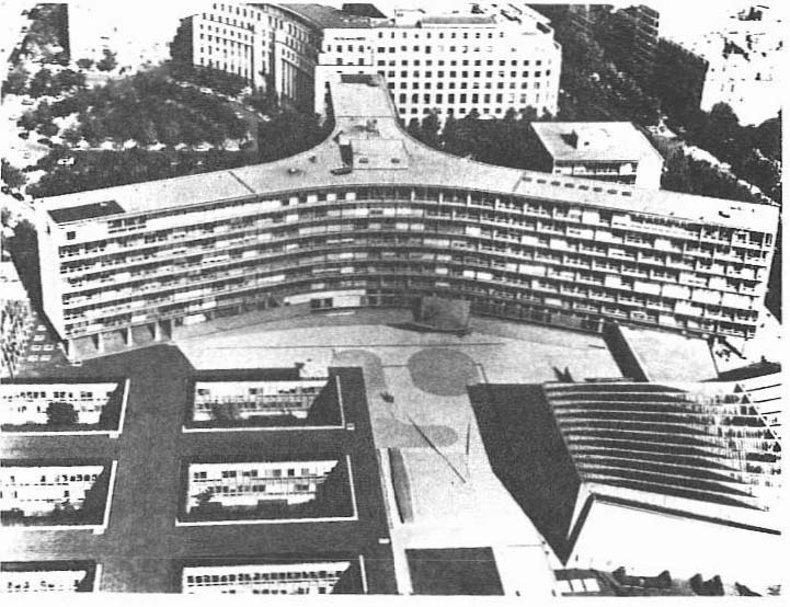 Il a été inauguré officiellement en 1958. A l’avant de la structure en Y, on voit à gauche bâtiment construit au-dessous du niveau de la place Fontenoy, ouvert sur des jardins en patios et occupé dès 1964. L’ensemble s’avéra rapidement insuffisant et il fallut édifier 3 autres bâtiments hors du site, l’un rue Miollis (1970), les 2 autres rue François-Bonvin (1978).