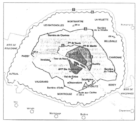 La photo 1 montre les limites des enceintes de Paris au cours des siècles :