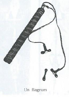 Un tronc ou « stipe” demeurait planté dans la terre. Sur ce stipe venait se placer une poutre, le « patibulum » d’environ 40 kg. Le condamné devait porter le patibulum depuis le lieu de sa condamnation jusqu’au lieu du supplice. Le condamné était nu. Avant la crucifixion, le condamné était flagellé avec un « flagrum » dont les morceaux de plomb arrachaient des lambeaux de chair.