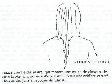 Un des plus curieux aspects de l’image est une longue mèche de cheveux tombant du sommet de la tête aux omoplates, sur l’empreinte dorsale. Cette mèche ressemble fort à une natte défaite. Ian Wilson, l’historien britannique, fut le premier à attirer l’attention sur ce détail. Il l’appelle « l’aspect juif le plus frappant du Suaire ». C’était une mode courante chez les hommes juifs au temps de Jésus, de porter les cheveux rassemblés sur la nuque en forme de natte. C’est un des nombreux détails de l’image qui vont à l’encontre de l’idée traditionnelle que les chrétiens se font de Jésus. Un faussaire n’aurait probablement pas pu savoir que Jésus nattait ses cheveux ainsi et il ne l’aurait certainement pas peint de cette façon au XIVème siècle.