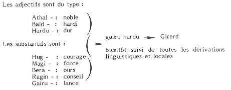 Formés comme les noms gaulois, les noms de personnes germaniques se divisent en 3 groupes :