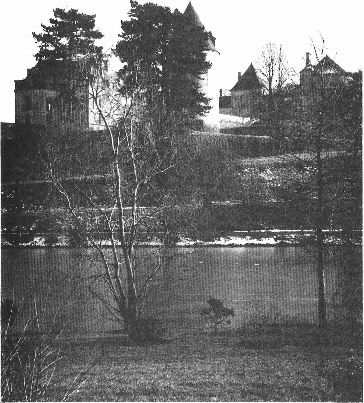 Fig. 1. Dominant l’étang du parc floral, la silhouette du château se découpe sur le ciel sans nuages.