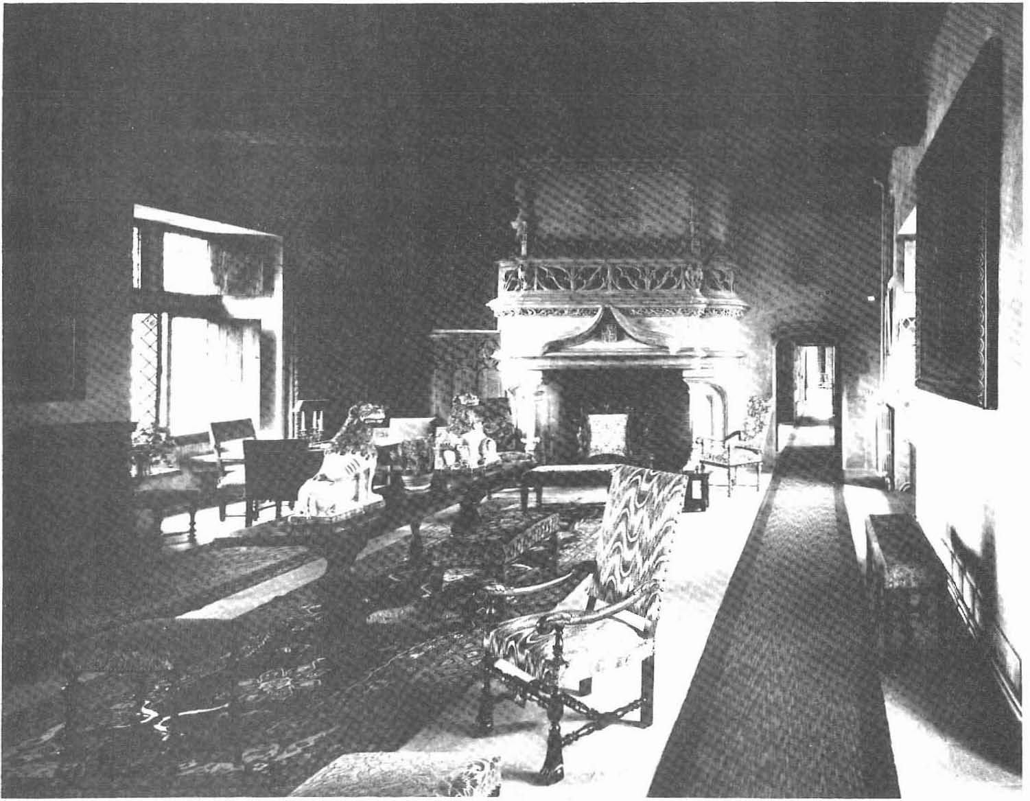 En face, une cheminée monumentale (fig. 4), de style gothique flamboyant, édifiée en 1934 à la demande d’Eugène Schneider. Elle est exécutée avec des pierres du pays.