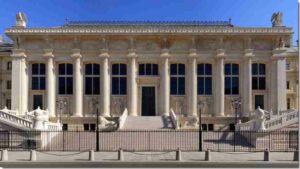 Nous pénétrons dans la magnifique Première Chambre du Tribunal de Grande Instance où siégeait anciennement le Parlement. Ce fut dans ce tribunal qu’eut lieu le procès de Marie-Antoinette. La décoration, comme beaucoup d’autres pièces du Palais, a été entièrement refaite au XIXème siècle en respectant au mieux le style des siècles passés. Le Tribunal de Grande Instance juge les affaires civiles impliquant un préjudice d’un montant supérieur à 30000 F.