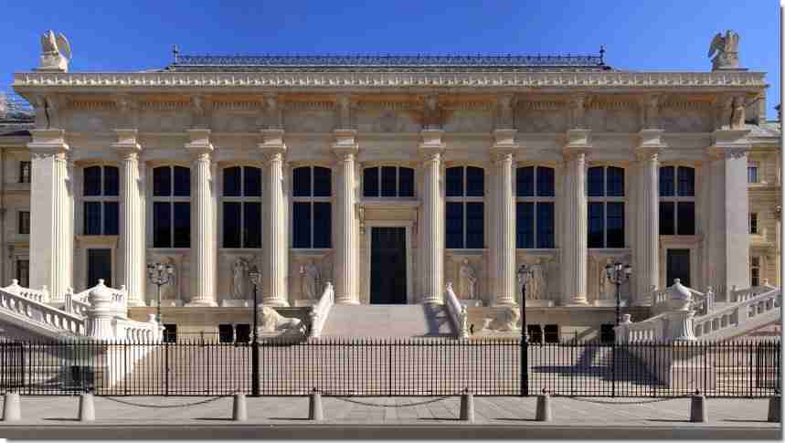 Nous nous arrêtons quelques instants devant un ensemble de sculptures, œuvre de Bosio (1768-1845), qui évoque le procès de Louis XVI avec, au centre, dominant le groupe, une statue de Malesherbes, l’un des avocats du roi, et sur la gauche, une statue représentant la France sous la forme d’une grande femme assise sur un rocher. Nous l’examinons plus particulièrement parce qu’elle a un côté (postérieur !) inattendu : n’arrivant pas à se faire payer régulièrement, le sculpteur, pour se venger, l’a représentée la robe retroussée par derrière et les fesses à l’air.