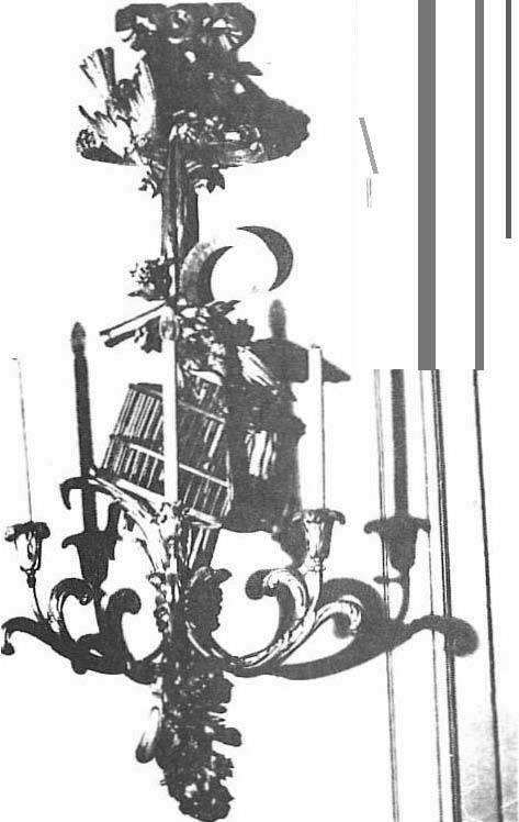 Les dessus de porte qui représentent des divinités mythologiques ont été peints par Maillard, en 1922, d’après les originaux de l’hôtel de Soubise à Paris. Les chaises sont de style Régence et la table date de la fin du XIXe siècle. Notons la décoration des murs faite de bois dorés : un grand cartel Louis XVI orné de colombes, de carquois et de cornes d’abondance, une paire d’appliques sculptées d’attributs champêtres (photo 11). Sur la console, un surtout en porcelaine de Saxe représente une scène de chasse au sanglier.