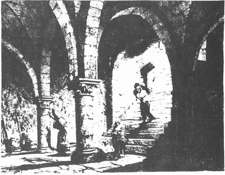 Photo 4.-La Grange aux Dîmes, salle basse, dessin du XIXe s.