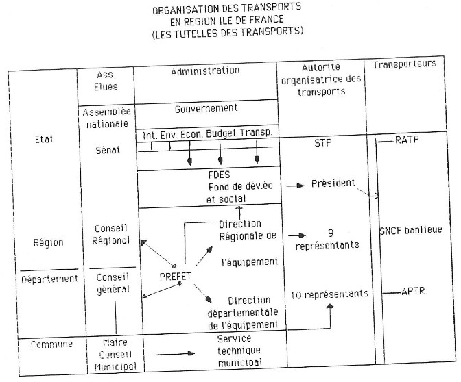 Entre ces différents ministères et les trois entreprises de transport (RATP, SNCF, APTR), il existe toute une administration : le syndicat des transports parisiens (STp).
