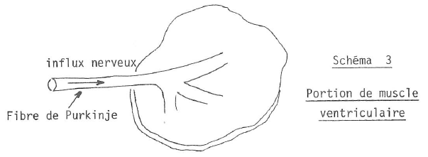 Le schéma 3 nous montre une fibre nerveuse aboutissant à une cellule musculaire microscopique.