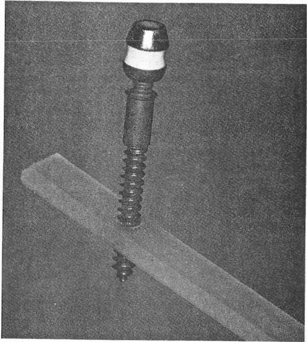 L’implant O.N.B. est formé d’une partie en forme de plaque horizontale en téflon et d’une partie amovible qui se visse dans la première qui sert d’ancrage à la prothèse.