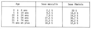 Le tableau 6 montre l’étendue de ce cancer en fonction de l’âge et du sexe.