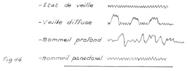 Ces deux paramètres varient avec l’état du sujet : veille, veille diffuse, somnolence, sommeil. (fig. 14)