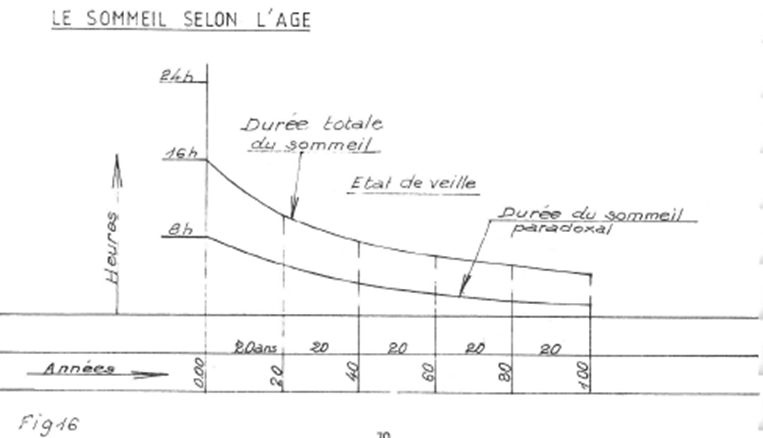 - celle du sommeil à ondes longues diminue moins vite. (fig. 16)