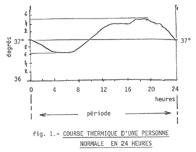 La période est le temps qui s’écoule entre les deux moments où l’état d’un phénomène est identique. Par exemple : la température corporelle, prise tous les jours, à la même heure et qui, l’état de l’individu étant normal, reprend la même valeur toutes les 24 heures ; la période est de 24 heures (fig. 1).