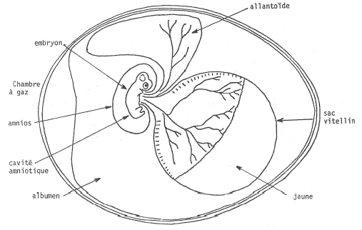 Fig. 11. Coupe schématisée d’un œuf de Poule à 10 jours d’incubation.
