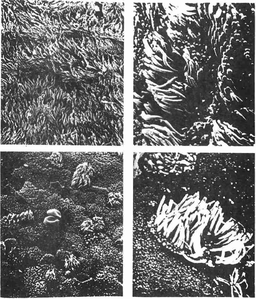 Ces quatre photographies remarquables, prises au microscope électronique à balayage, concernent l’épithélium de la trachée du Furet (Fig. 1).