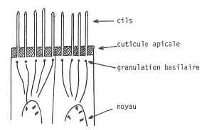 Fig. 2. Deux cellules ciliées de l’épithélium de la trachée.