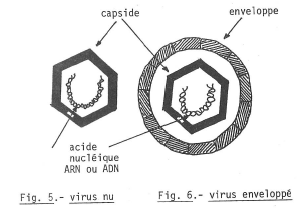 Les figures 5 et 6 donnent le schéma de deux types de virus, nu et à enveloppe.