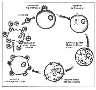 Ce parasitisme est dû à la présence d’un acide nucléique à l’intérieur de la particule virale (A.D.N. : acide désoxyribonucléique, A.R.N. : acide ribonucléique) (fig. 7).