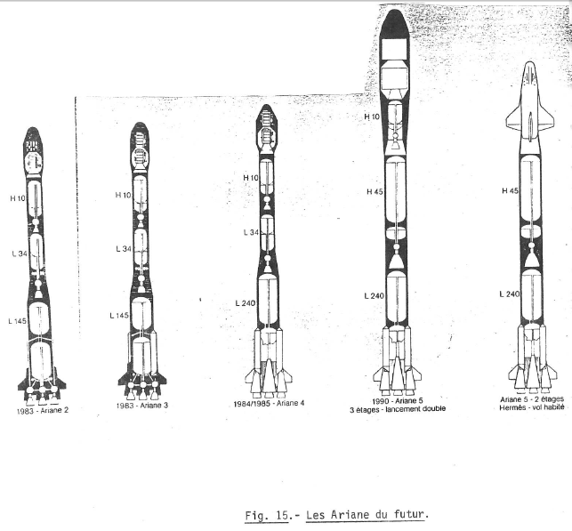 Une masse supérieure à 3600 Kg peut alors être placée en orbite de transfert. Une coiffe de diamètre accru permettra d’emporter des satellites plus grands (4m de diamètre au lieu de 3,2m). La filière Ariane se poursuivra avec Ariane 5 qui vise la satellisation de charges très lourdes : vols habités, plates formes spatiales … navette européenne pour 1992 avec 3 cosmonautes ?).