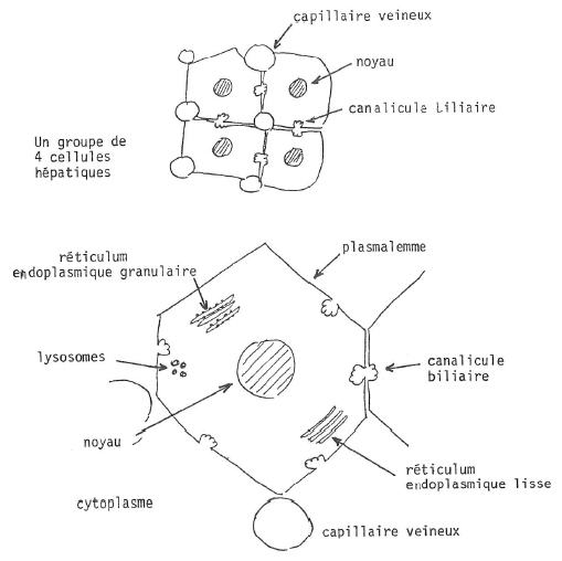 fig. 1. SCHÉMA SIMPLIFIE de CELLULES HÉPATIQUES