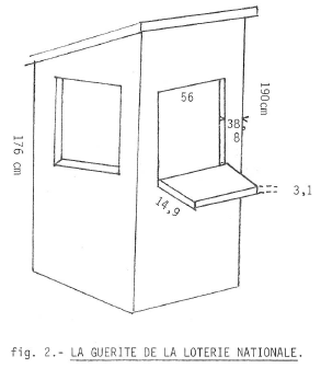 Enfin, « la guérite de Jean-Paul ADAM » a conclu la projection. Cet archéologue sérieux, qui a écrit « l’archéologie devant l’imposture », a tourné en dérision les fantaisies émises au sujet de la pyramide de Chéops. Prenant les dimensions d’une guérite de vendeuse de billets de la loterie nationale, il en combina les nombres et en tira un certain nombre de connaissances scientifiques, comme la distance de la terre à la lune, et la formule chimique de la naphtaline (fig. 2).