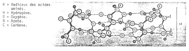 Fig. 9. Configuration hélicoïdale des chaînes polypeptidiques dans une protéine fibrillaire,