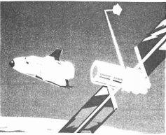 | To + 48 h. : Rendez-vous et amarrage avec la station visitable autonome européenne. Puis entretien de celle-ci. | ![]() |