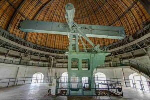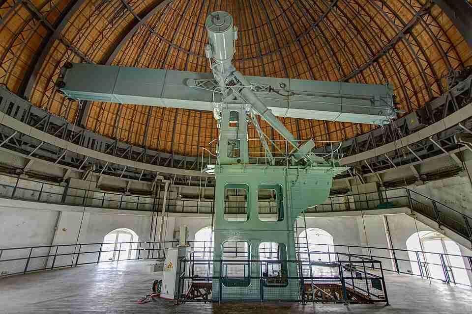 Le Grand Sidérostat destiné à certaines études sur le soleil ; un miroir plan de 75 cm de diamètre, mobile pour pouvoir « suivre » le soleil, en renvoie les rayons dans la direction de l’axe d’un télescope au miroir de 40 cm de diamètre et de 23 m de focale ; le télescope est associé à un spectrographe qui étale tout le spectre solaire sur 6 mètres. Les photographies des raies du spectre, par leur finesse et leur écartement, permettent des études précises sur les mouvements des masses de gaz à la surface du soleil.