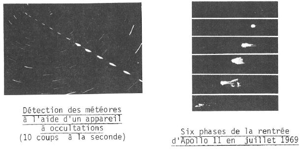 Il est relativement facile de distinguer les rentrées de satellites, de météorites. En effet, les météorites sont en général beaucoup plus rapides, de durée d’observation très brève, et l’orientation de la trajectoire est quelconque. Certains de météorites apparaissent régulièrement (au mois d’août par exemple). Certains satellites artificiels (les plus bas) peuvent aussi être observés à l’œil nu lorsqu’ils sont en orbite. Ils réfléchissent simplement la lumière du soleil. L’observation s’interrompt lorsqu’ils rentrent dans l’ombre de la terre.