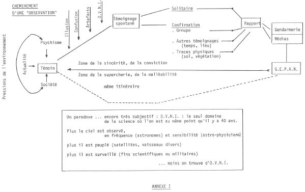 En l’absence d’approche rigoureuse et générale de ce sujet, les démarches les plus passionnelles et subjectives se développaient. C’est dans ce contexte très particulier que le C.N.E.S. décidait, en 1977, d’entreprendre une étude scientifique des phénomènes aérospatiaux non-identifiés en créant le G.E.P.A.N. (« Groupe d’Études des Phénomènes Aérospatiaux Non-identifiés »).