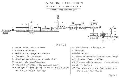 Les habitants de la région parisienne consomment chaque jour 1 000 000 m3 d’eau ; les eaux souterraines fournissent 470 000 m3. Les établissements filtrants d’Ivry sur la Seine, et de Saint-Maur sur la Marne ajoutent 300 000 m3. La station d’Orly complète avec 300 000 m3 par jour.