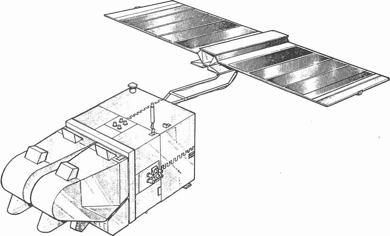 Vue générale du satellite S.P.O.T., panneaux solaires déployés
