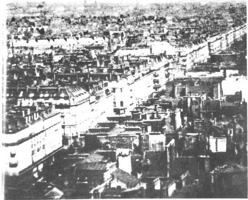 Une des premières vues aériennes de Paris prise du ballon de Nadar en 1866.