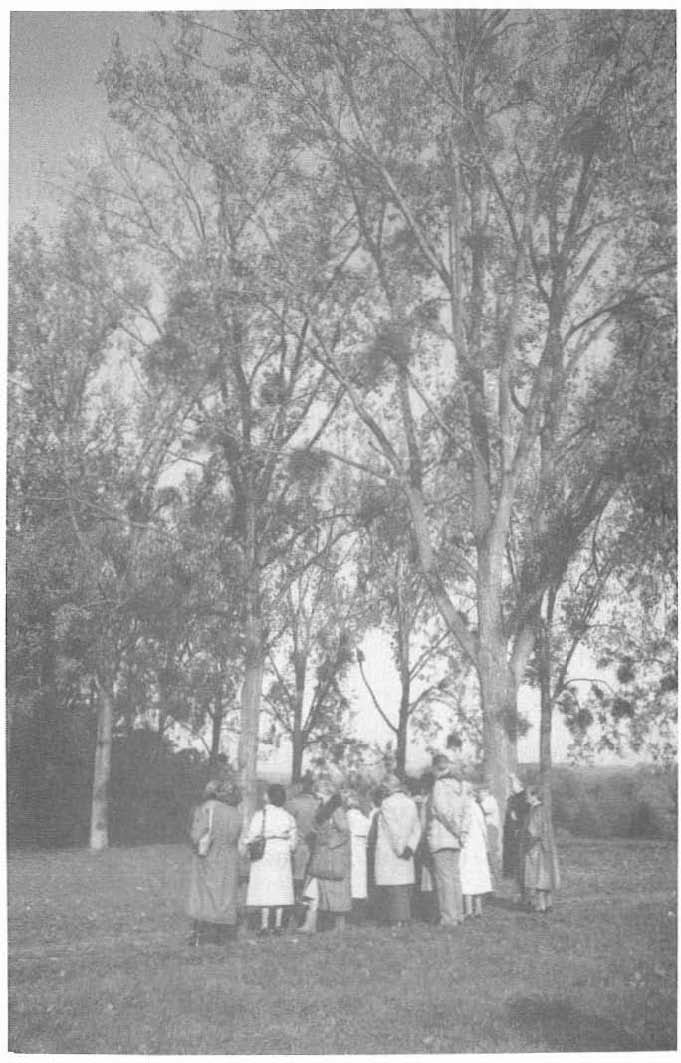 Premier arrêt devant des peupliers recouverts de gui. Notre conférencière nous explique qu’on ne peut les enlever totalement. Un arbre parasité reste toujours parasité.